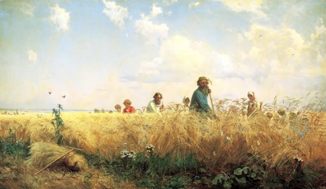 Даже сто лет назад уборка хлеба была изнурительной работой. В школьном учебнике "История древнего мира" мы видим египетские фрески, изображающие жнецов с серпами и колосьями в руках.